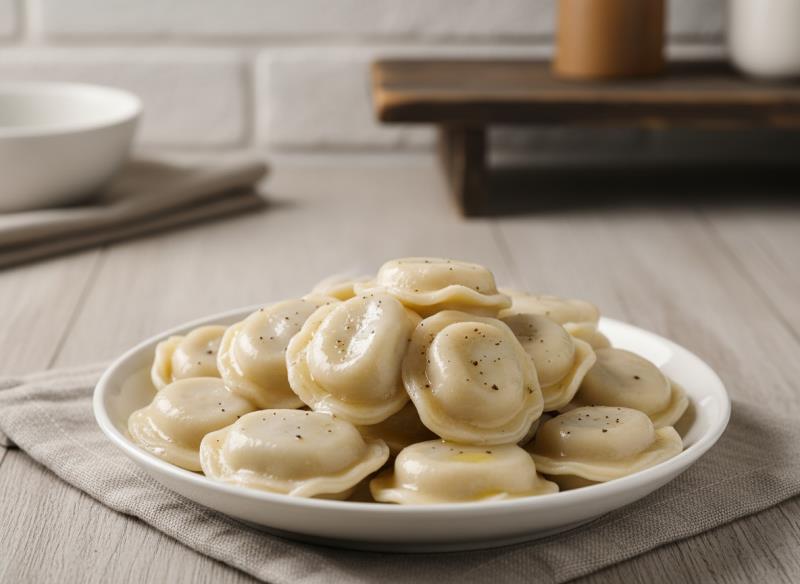 İnce hamurla sarılmış et dolgulu Rus mantısı, sade sunum ve klasik pişirme tekniğiyle servis edilir. Geleneksel ve yoğun lezzet.