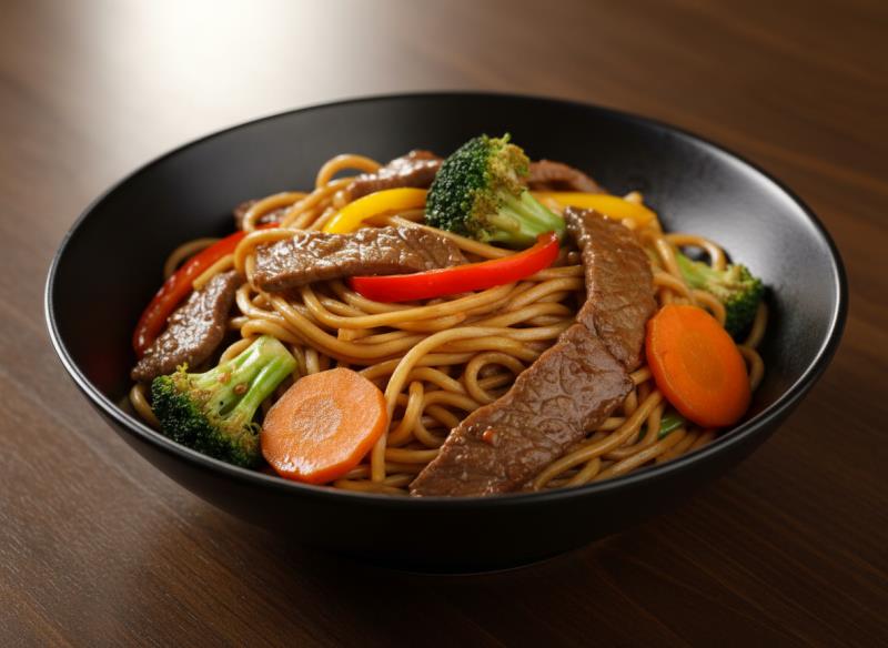 Noodle eriştesi, yumuşak bonfile dilimleri, mevsim sebzeleri ve aromatik wok sosu ile hazırlanır. Güçlü, dengeli ve premium bir seçenek.